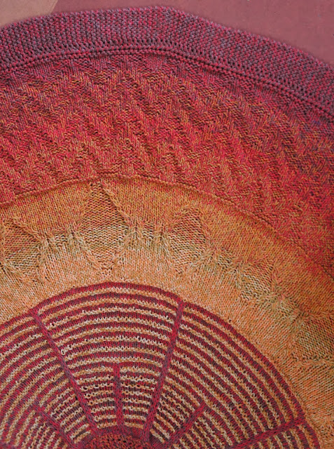 Dit is mijn interpretatie van The Old Forge, een ontwerp van Steven West. De originele old forge is een ronde deken met een diameter van 1,60 meter. Ik heb hem gebreid met een gat in het midden.